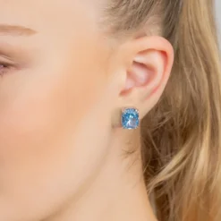 Latelita Alexandra Rectangle Gemstone Necklace Silver Blue Topaz