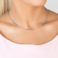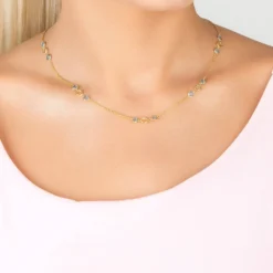Latelita Open Clover Flower Gemstone Necklace Silver Blue Topaz
