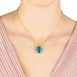 Latelita Beatrice Oval Gemstone Pendant Necklaceâ Gold Blue Topaz Hydro