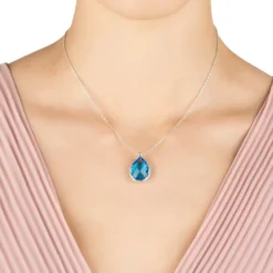 Latelita Beatrice Oval Gemstone Pendant Necklace Silver Blue Topaz Hydro