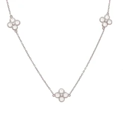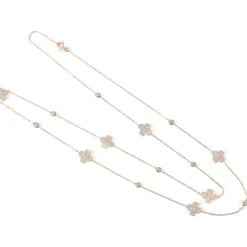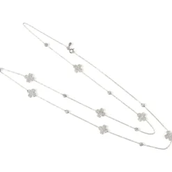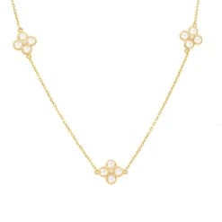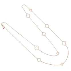 Latelita Flower Clover Long Chain White Quartz Necklace Gold