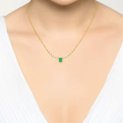 Latelita Alexandra Rectangle Gemstone Necklace Silver Colombian Emerald