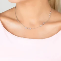Latelita Florence Round Gemstone Necklace Silver Rose Quartz